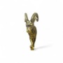 This is a decorative wall hook crafted from brass, designed in the shape of a ram’s head. The ram’s face and fur are intricately detailed, and its prominent, spiraling horns are ridged. The functional hook extends from the lower part of the ram’s neck, making it suitable for hanging items. It has a vintage or rustic appearance and is photographed on a white background.
