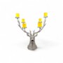A striking candelabra featuring a metallic silver stag head with its antlers serving as the candle holders. It is designed to hold multiple pillar or votive candles, creating a rustic and elegant centerpiece.